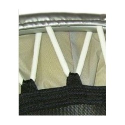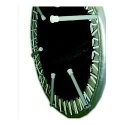 Heymans Trimilin-Trampolines stands out through the unique special mat, that allows harmonic vibrations and is easy on the joints. The mat is highly elastic, which means, it always goes back to the original position and does not wear out. The bouncing characteristics stay consistent over many years. The high-grade materials and the thick foam cushioning on the side of the Heymans Trimilin-Trampoline provide good protection against injuries.